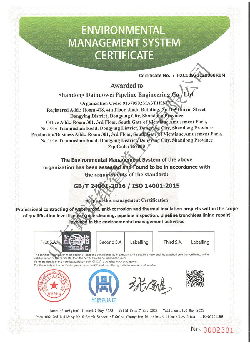 管道非開挖修復(fù)工程服務(wù)企業(yè)資質(zhì)證書