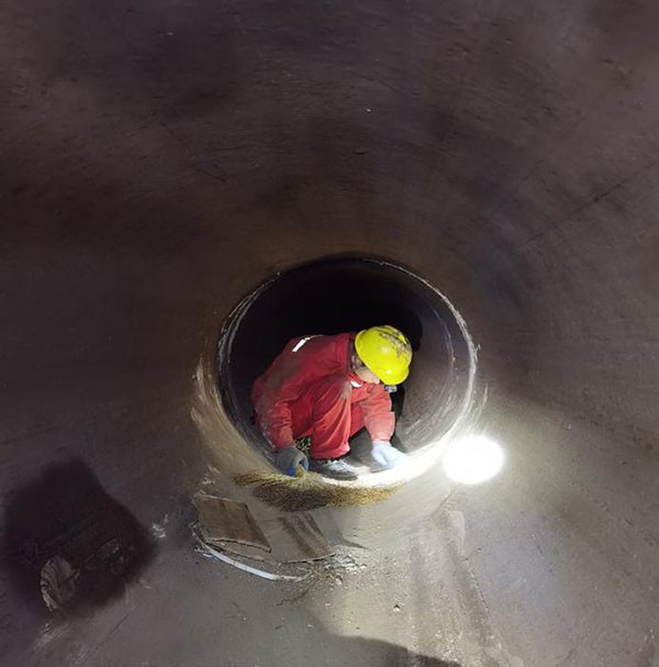 3.項(xiàng)目概況:泰安自來(lái)水公司黃前原水管線(一期)改造工程春陽(yáng)溝村段不銹鋼內(nèi)襯工程,原管道為DN1000砼管,工程起點(diǎn)為石門(mén)村村南,終點(diǎn)為張家戶村北,不銹鋼內(nèi)襯修復(fù)長(zhǎng)度1244米,并制作DN1000不銹鋼彎頭1個(gè)。內(nèi)襯管材質(zhì)為:SUS304不銹鋼,DN1000內(nèi)襯管壁厚δ1.5mm。